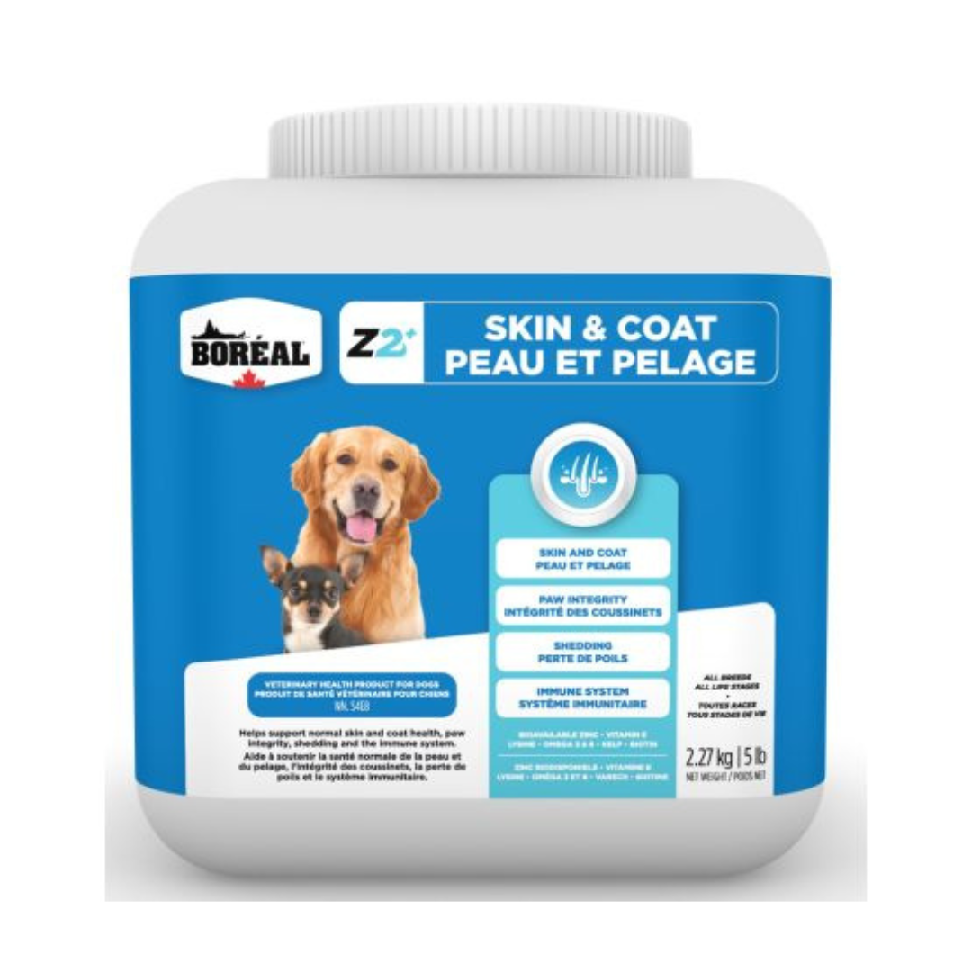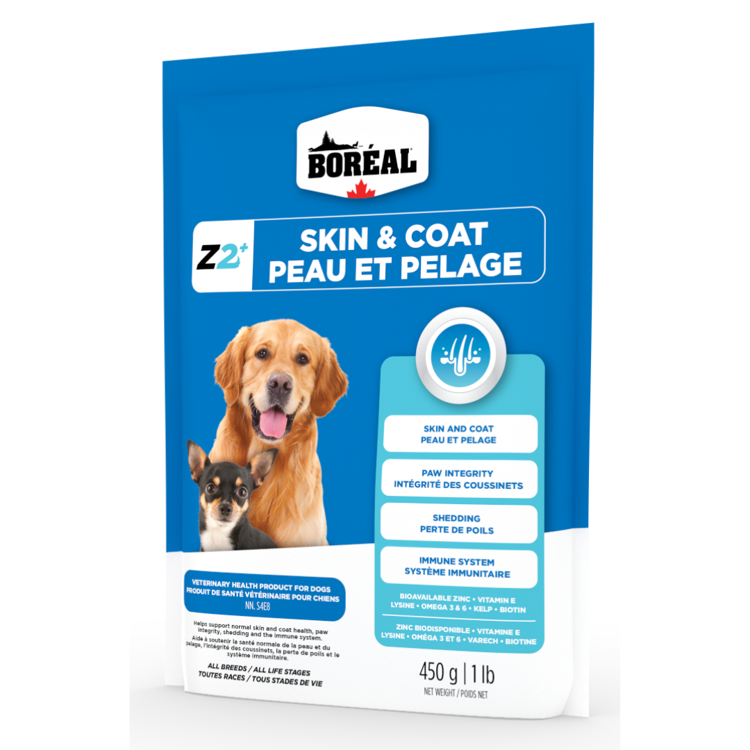 Découvrez Z2+, un supplément révolutionnaire conçu pour améliorer la santé de la peau et du pelage de votre animal—et bien plus encore.